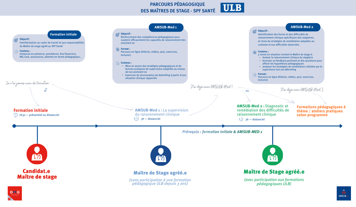 - Outils pédagogiques : cours en présentiel, cours digitaux, échange avec des pair-aidants, simulation, visite de centres opérateurs, table ronde